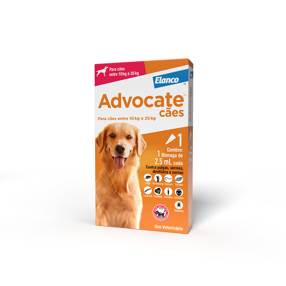 Advocate Antiparasitário p/ Cães de 10 a 25 kg 2,5 ml c/ 1 Bisnaga