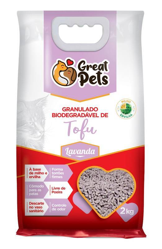Areia Higiênica Great Pets Granulado Biodegradável de Tofu Lavanda 2 kg