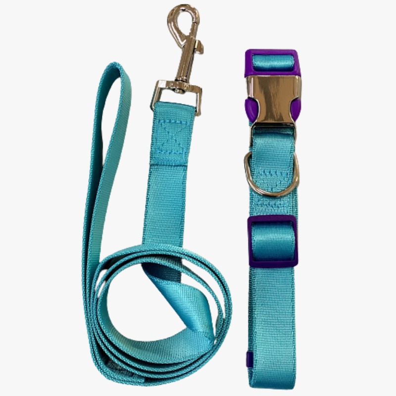 Coleira c/ Guia Great Pets Azul Metal Tamanho M