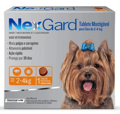 NexGard Ectoparasiticida Afoxolaner p/ Cães de 2 a 4 kg Sabor Carne c/ 1 Tablete Mastigavel