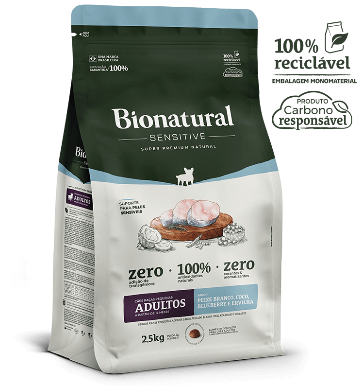 Ração Bionatural p/ Cães Adultos Sensíveis Porte Pequeno Peixe Branco 2,5 kg