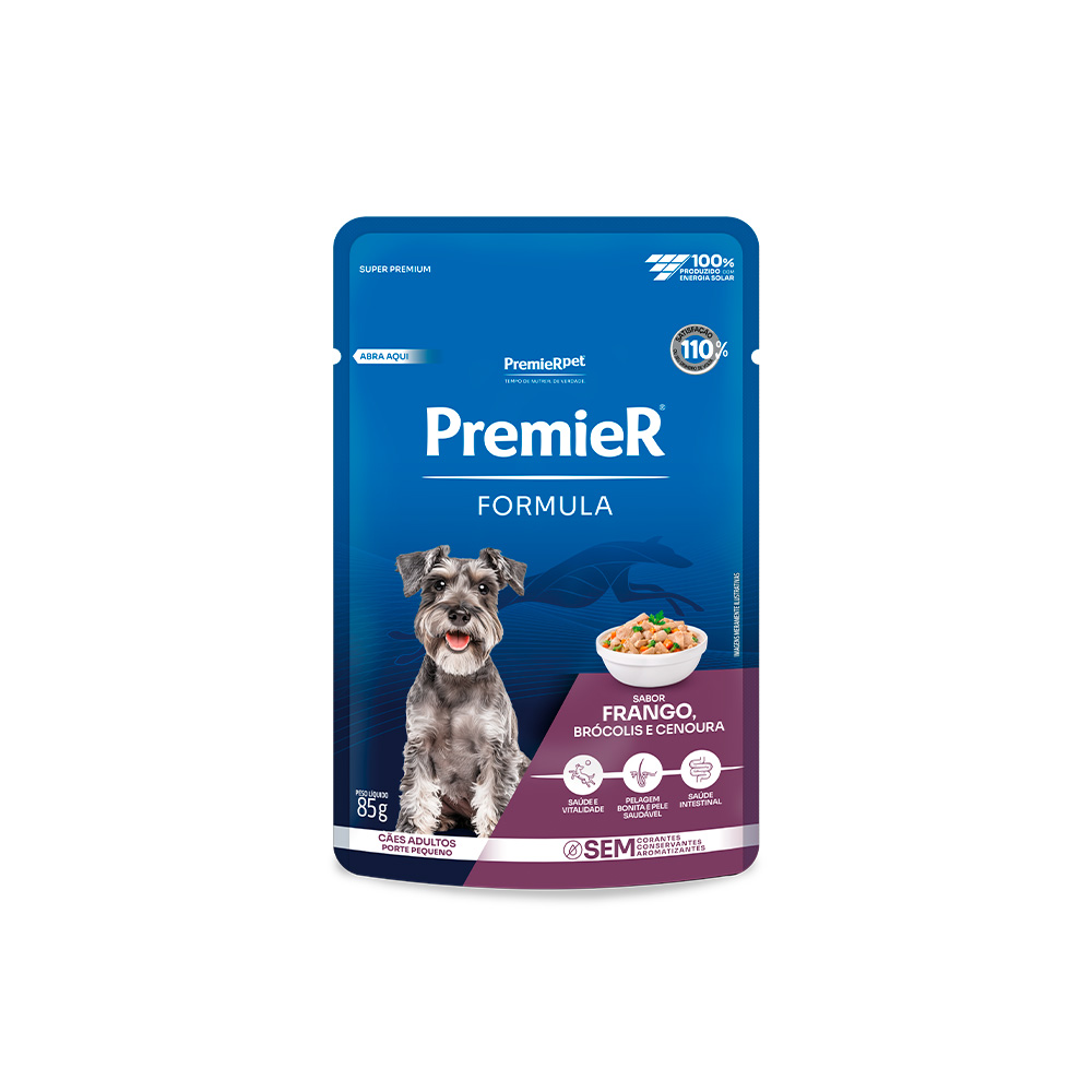 Ração Úmida Premier Fórmula Cães Adultos Pequeno Porte Frango Brócolis e Cenoura 85 gr.
